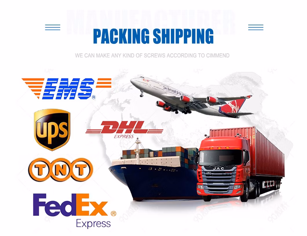 | Тип головки | Плоская головка, полукруглая головка, потайная головка, круглая коническая головка, шестигранная головка, круглая головка с шайбой, поддон с головкой с шайбой и т.д., в соответствии с требованиями заказчика |